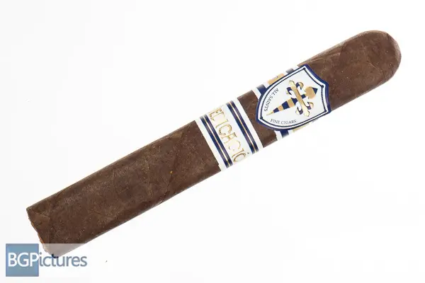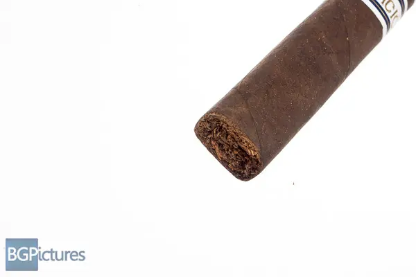This 5.5×50 sharp box pressed stick features an oily toothy firmly packed thick wrapper with a triple cap and peppery, must cocoa aroma. First light reveals a plugged draw that required significant work to pull out a huge vein. After that flavors were medium-full with a big cocoa and vanilla on the draw followed by a late spice washing over the tongue. The 1/2 way point comes at 25 minutes with the vanilla dropping, a deep earth joining the cocoa which is now dry without the sweetness. The finish is oily and still spicy, leaving heat on the lips. Ending at 55 minutes the last third burned slower, keeping the same profile.