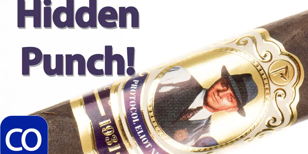 Protocol Eliot Ness Toro Cigar Review – This 6×52 box pressed stick features a very dark almost black, firmly packed oily, toothy wrapper with a large double cap and musty pepper and cocoa aroma. First light reveals a perfect draw with copious amounts of thick rich smoke showing notes of a heavy damp earth and cocoa with a building pepper and oily spice through the long finish. The first third burns perfectly with an apricot sweetness joining in while the lip burning heat dies down. The 1/2 way point comes at 30 minutes even smoking fast, with notes adding a smooth yeasty bread note to the draw and the heat still declining on the long finish and body down to medium-full. Ending with plumes of smoke at 1:20 the last third held the same flavors to the nub, burning much slower, with a strength kick right at the end. This video is sponsored by SmokeInn.com