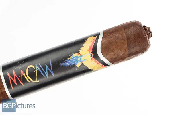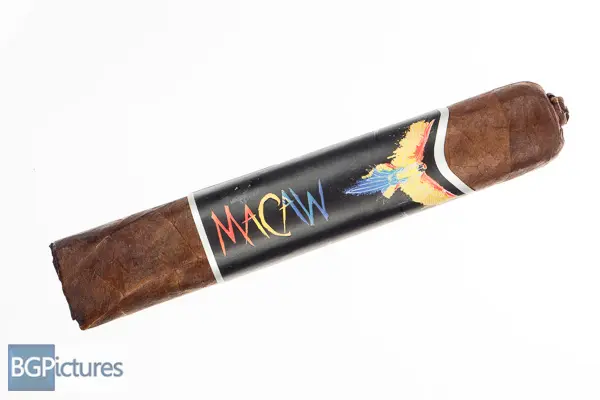 Blackbird Limited Edition Macaw Cigar Review – This 5 1/8×58 box pressed stick features a dark chocolate mottled wrapper with a firm pack, buttery soft oily feel and a double pigtailed cap with a slight musty cocoa aroma. First light reveals a flawless draw with plumes of thick rich medium-full bodied smoke with a building deep dark earth, heavy but not textured pepper and building vanilla spice on the long finish. The first third burns very slowly with perfect construction, down a tick to medium body with notes completely shifting to a slightly sweet cocoa and robust rich leather that carries through the finish with just a hint of pepper and spice on the tongue. The 1/2 way point comes just under an hour in with still perfect construction and the same rich flavors. Ending at 1:45 the last third mellowed a bit dropping the pepper and spice with the leather fading a bit to a deep earth, keeping the slightly sweet cocoa.