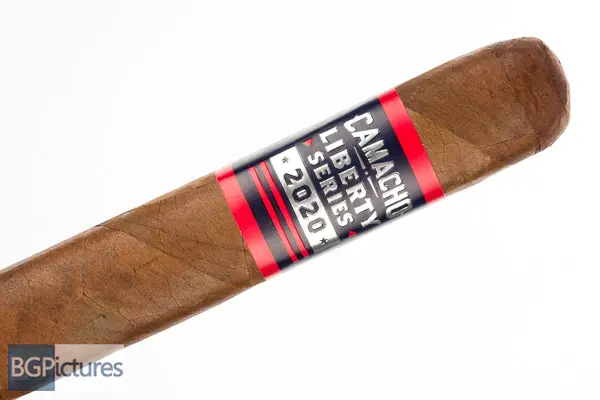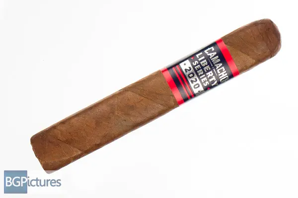 Camacho Liberty 2020 Gordo BXP Cigar Review – This 6×60 box pressed stick comes in a coffin featuring a dark brown, slightly soft but evenly packed wrapper with an oily butter soft feel, rich sweet cocoa aroma and a large double cap. First light reveals a snug draw with minimal smoke output showing a very sweet and spicy slight leather with a building oily heat on the long finish. The first third, after using the PerfecDraw, opens up to a good raw with mild-medium smoke showing a slightly sweet cocoa and coffee with a much lower spice through the finish. The 1/2 way point comes at 5 minutes getting better and better as it burns down. Medium-full in body now, it keeps the sweet smooth cocoa and coffee core adding a touch of raisins through the long silky finish with just a touch of the spice. Ending at 1:35 the last third slowed the burn, continuing the great flavor and smoke production to the nub.