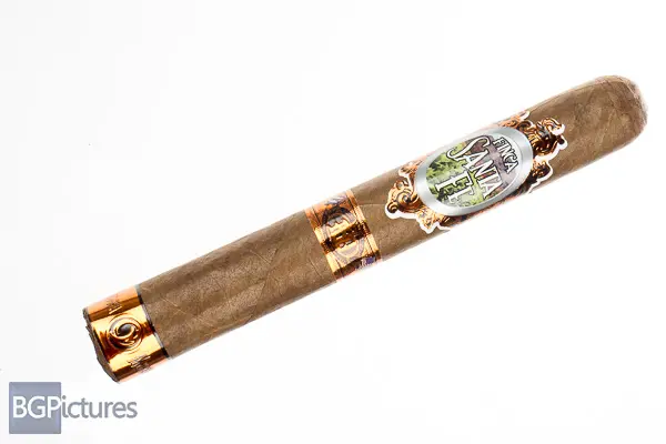 Córdoba & Morales Finca Santa Fe FSG Toro Cigar Review – This 6×52 stick features a slightly grey dark brown wrapper with a firm, slightly oily feel, satin finish, triple cap, closed foot and sweet dusty aroma. First light reveals a flawless draw with thick medium-full bodied smoke showing a FSG sweet woodiness but on the lighter side with no texture or bite. The first third burns slowly, keeping the same notes and adding a deep pepper mostly on the long finish. Construction is flawless but globs of glue did tear the wrapper at points during removal. The 1/2 way point comes at 40 minutes with no changes. Ending at 1:15 the last third burned slow and cool keeping a consistent blend.