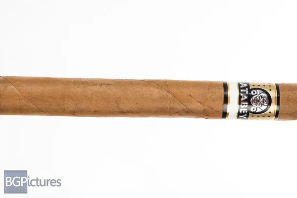 Atabey Spiritus Cigar Review – This 7.5×40 stick features a satin, finely toothed, firmly packed but light dark tan wrapper with a triple pigtailed cap and rich sweet cocoa aroma. First light reveals a snug draw with almost chewy medium bodied smoke showing a dense woody note with short finish and touch of pepper. The first third gets very slightly more open with body up a tick to medium-full with a long finish. Flavors are largely the same with a nuttiness and dark oaky bourbon. The 1/2 way point comes at 40 minutes with flavors finally changing quite a bit to a sweet, syrupy, smooth dark oak with a touch of pepper, all through the long finish. Ending at 1:15 the last third dropped the sweetness and added a medium strength punch.