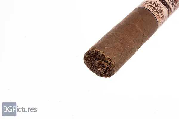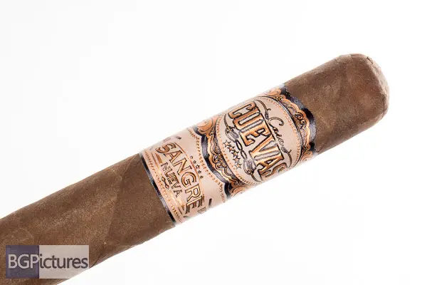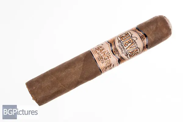 Casa Cuevas Sangre Nueva Robusto Cigar Review – This 4.75×52 stick features a dark, dusty brown wrapper with a fine sandy tooth, satin feel, large double cap and pungent campfire aroma. First light reveals a flawless draw with plentiful medium bodied smoke showing notes of a lighter fire cured taste with a vanilla and building zip & zing through the long growing finish. The first third comes up to medium-full with the fire cured taste going to the background while the vanilla comes up with a dark roast coffee, which joins the spice and zing on the long finish. The 1/2 way point comes at 30 minutes continuing the perfect burn with just the spice mellowing out on the finish and the ash holding solid. The last bit finishes at 1:10 minutes with notes largely the same but the burn slowing even further, still with perfect construction.