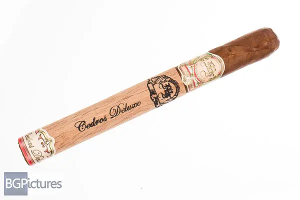 My Father Cedros Deluxe Cervantes Cigar Review – This 6.5×44 stick features a dark chocolate, thick oily wrapper with a butter soft feel, triple cap and rich raisin and cocoa aroma. First light reveals a perfect draw with medium-full bodied smoke showing a thick, rich smoke with flavors of a deep smooth earth, slightly bitter cocoa and a dustiness, all of which carry through on the long finish which adds a pepper zing and slight spicy heat. The first third comes down to a solid medium body, with a silky smooth smoke and aged tobacco texture. The earth dies down a touch with a bit of oak joining in. The 1/2 way point comes at a slow 40 minutes dropping short but solid chunks of ash. Flavors are largely the same at this point, just dialing down the pepper and spice on the end. The last third comes down to mild-medium keeping the same complex notes to the nub at 1:30 in.