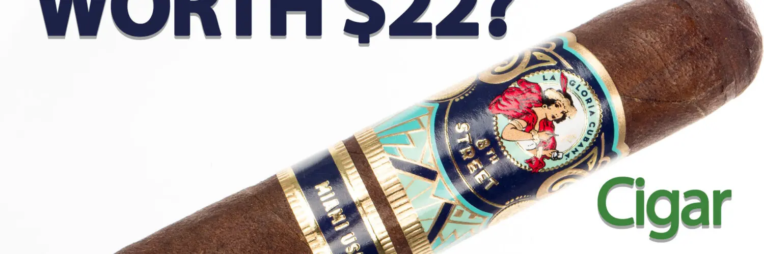 La Gloria Cubana 8th Street Cigar Review – This 6×50 stick features a dark chocolate, firmly packed, oily, toothy wrapper with a triple cap and rich pungent musty cocoa aroma. First light reveals a perfect draw with rich thick medium-full bodied smoke showing notes of a musty, dry cocoa with a building pepper and spice kick on the long finish. The first third burns perfectly with flavors shifting to a slightly sweet nougat and coca with a leather and mellowed pepper and spice on the finish. The 1/2 way point comes at 35 minutes with flawless construction and no changes. Ending at 1:15 the last third added a good strength kick, with notes mellowing to a dry cocoa and wood note, with an earthy finish.
