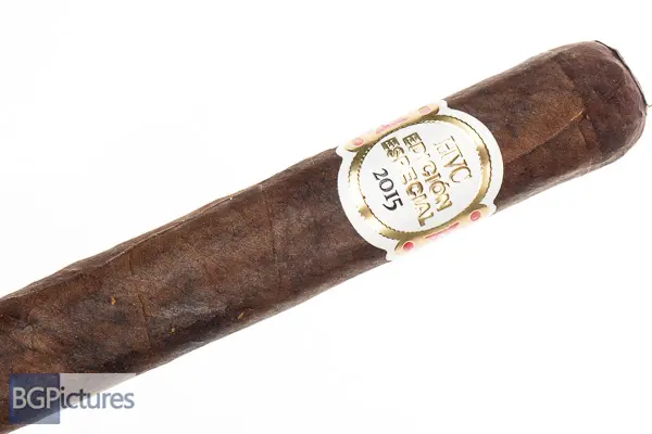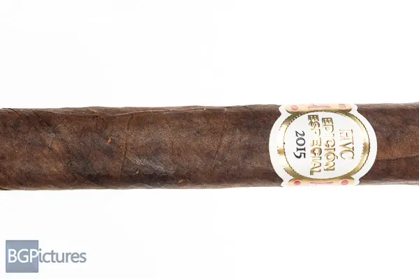 HVC Edicion Especial 2015 Toro Gordo Cigar Review – This 6×56 stick features a heavy, dense firmly packed dark cocoa wrapper with a buttery soft feel, triple cap and pungent sweet barnyard aroma. First light reveals a great draw with full bodied flavors of a creamy, smooth heavy earth and dry cocoa with a bit of pepper taste but no texture through the long finish. The first third comes down to a medium body mellowing everything out, adding a sweetness and bit of coffee to the mix. The 1/2 way point comes at a slow 50 minutes with notes mellowing further, dropping the earth, to just a soft sweet cocoa, coffee and slight pepper. Ending at 1:55 the last third burned perfectly and very slowly, keeping all the same flavors to the nub.