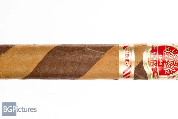 H. Upmann 1844 Special Edition Barbier Toro Cigar Review – This 6×54 barber pole stick features twin wrappers in Connecticut and Sumatra with a very hefty feel, firm buttery smooth pack and feel, large double cap and pungent sweet nutty cocoa aroma. First light reveals a snug draw with medium bodied smoke showing a vegetal sweetness with a very smooth light wood core on a short buttery soft finish. The first third finally improves the draw but still just medium bodied notes and a shortish finish. Flavors did completely shift though going to a slight vanilla, leather and coffee. Ending at a slow 1:45 the last third showed no changes.