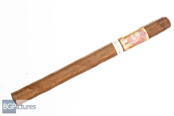 Caldwell Long Live the Queen Queens Sword Cigar Review – This 7×38 stick features a dark brown buttery soft feel with a slightly soft even pack, triple cap and faint cocoa aroma. First light reveals a slightly snug draw with good mild-medium smoke production showing notes of a dry woody core with a mild heat on the retro, with a fairly short finish of the same. The first third quickly comes up to a medium body with a long smooth finish, showing a combo of a syrupy leather, gingerbread and dry cocoa, all sticking around to the next draw with a touch of tingle. The 1/2 way point comes at 40 minutes just adding a dark roast coffee to the tail of the finish, mixing well with the cocoa to the next draw. The final third burns a bit faster, ending at 1:05 with flavors shifting to pure cocoa and coffee, even dropping the little zing, staying medium bodied and smooth to the warm nub.