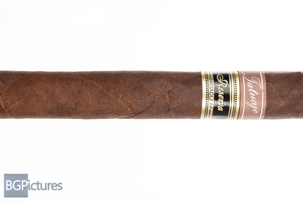 Tatuaje Reserva Broadleaf SW Churchill Cigar Review – This 7×47 stick features a thick, very firmly packed dark chocolate wrapper with an oily pronounced tooth, large double cap and damp cocoa and hay aroma. First light reveals a perfect draw with mild-medium bodied notes of a creamy textured soft spicy earth building much more on the peppery finish than the draw. The first third wakes up to a medium-full body with notes of a smooth sweet caramel and earth, slightly sweet cocoa with a building pepper and spice zing on the long finish of the same. The 1/2 way point comes at 45 minutes with perfect construction, holding the same profile. Ending at 1:20 the last third continued the same great flavors and construction to the nub.