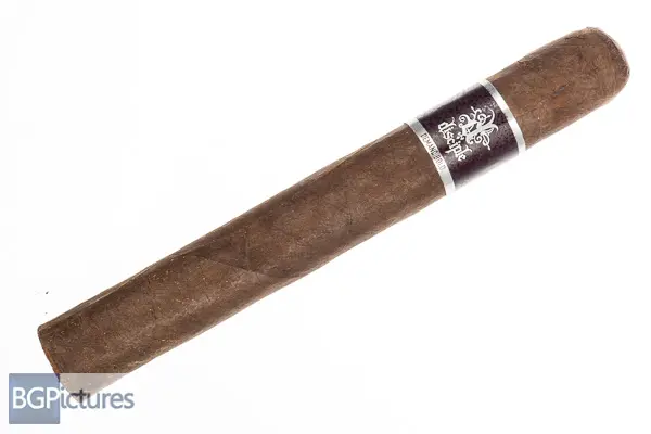 Diesel Disciple Toro Cigar Review – This 6.25×52 stick features a very dark brown almost black wrapper with a dry sandy tooth feel, large triple cap, slight soft even pack and pungent fire cured aroma. First light reveals a flawless draw with a building medium-full body of thick almost chewy smoke showing smooth meaty umami, light earth and cayenne notes on the long zesty finish. The first third needs a quick touchup with a wonky burn but delivers a still perfect draw with thick smoke showing notes of a creamy sweet bread through a fairly long finish of the same. The 1/2 way point comes at a fast 25 minutes with the body down to medium and the flavors joined by a slight caramel sweetness, with everything lasting on the finish just to the next draw. The last third ends at 1:05 minutes to the hot nub with notes adding a sweet musty coca with a medium strength joining from the band.