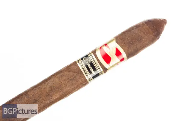 Tatuaje Avion 13 Double Perfecto Cigar Review – This 6 7/8×52 stick features a dense, dark cocoa mottled wrapper with a soft box press, double shaped tips, slightly lily satin feel and rich sweet cocoa and tobacco aroma. First light reveals a flawless draw with medium-full bodied silky smooth thin smoke showing a chocolaty earth with a decent cayenne kick on the long finish. The first third continues to burn perfectly showing a bigger milk chocolate note joined by a rich coffee on the draw, with a zingy pepper and spice through the long smooth finish. The 1/2 way point comes at a super slow 55 minutes keeping the same great flavor package and flawless burn and draw, without any further complexity but keeping me interested. Ending at 1:45 the last third needed a small additional cut for tar but was fine after that, holding the same flavors and adding an almost matching strength kick past the band point.