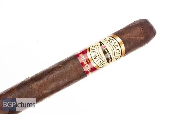 Punch Cigar City Brewing Maduro Toro Cigar Review – This 6×50 stick features a dark chocolate, thick, toothy, oily wrapper with a rock hard feel, large double cap and sweet musty cocoa aroma. First light reveals a great draw with medium-full bodied smoke of a smooth earth, building pepper and spice with a tickle on the warm retro and long finish of the same. The first third settles down to a medium body with the earth up a touch, blending well with all the rest, while the finish is a tad bit shorter. The 1/2 way point comes at a slow 40 minutes with notes unchanged and perfect performance. Ending at 1:00 the last third continued the slow perfect burn with flavors unchanged to where I had to end it, with a BIG strength kick from the band back!