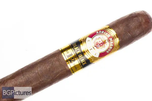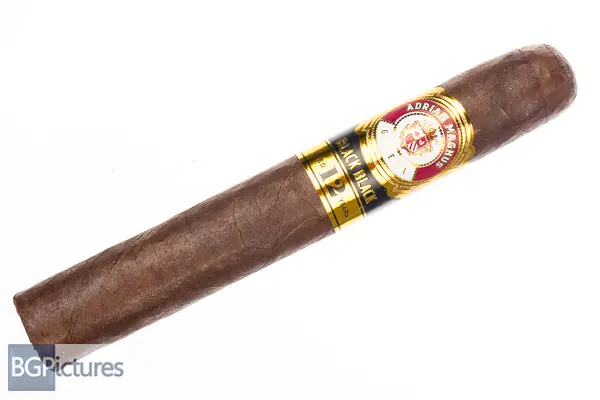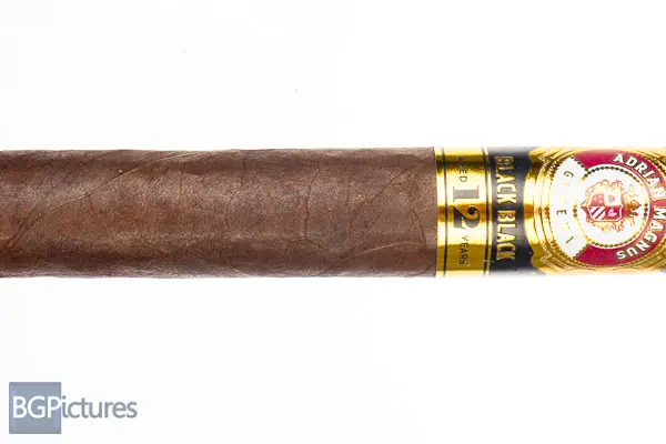 Adrian Magnus Black Black Cigar Review – This 6×52 stick features a mottled dark cocoa firmly packed wrapper with a buttery soft oily feel, large double cap and faint hay aroma. First light reveals a flawless draw with thick, slick and smooth smoke showing a slightly sweet cocoa with a fairly short clean finish of the same. The first third continues the perfect performance, with a medium body and flavors joined by a smooth creamy coffee, with the finish now long, holding all notes to the next draw. Ash falls in solid 1.5″ chunks, hitting the 1/2 way point 35 minutes in with the body up to medium-full and a caramel sweetness joining the coffee and cocoa. Ending at 1:15 the last third kept the same notes but shifted the coffee to the forefront, with the burn slowing down to the nub.