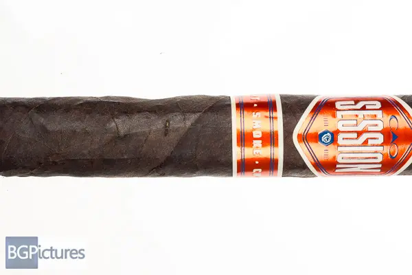 CAO Session Shop Cigar Review – This 6×60 stick features an almost black maduro wrapper with an oily firm feel, rough tooth, large double cap and sweet damp earthy aroma. First light reveals a perfect draw with plentiful but light and airy mild-medium smoke showing a light earth and building cayenne spice through the long finish. The first third has abit of a wavy burn but flavors are up to a medium of the draw with a touch of vanilla and deep earth, while the finish amps it up to medium-full pulling back the spice a bit but with much more earthiness to the next draw. The 1/2 way point comes at 40 minutes with still great construction and unchanged flavors. Ending at 1:35 the last third slowed the burn way down, adding a deep coffee to the earth, with the body hitting medium-full with the spice gone through the long finish to the nub.