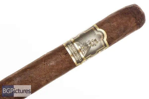 The Tabernacle Toro Cigar Review – This 6×52 stick features a dark cocoa mottled wrapper with a dry satin feel, very firm even but light pack, large double cap and very faint sweet aroma. First light reveals a flawless draw with a light, creamy dusty cocoa on the medium bodied draw followed by a zingy cayenne through the finish. The first third burns quickly but razor sharp up to a medium-full body with increased smoke showing flavors of the same coca adding a big dark caramel to the mix. The 1/2 way point comes at 25 minutes with notes unchanged, still near full and complex. The last third burns much slower, ending at 1:10 to the hot nub, with flavors going simpler just keeping the dry dusty cocoa on the draw and finish.