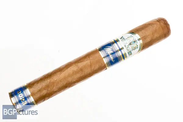 Villiger Miami 2023 Canonazo Cigar Review – this 5 7/8×53 stick features a medium brown, buttery soft wrapper with an even soft pack, triple cap and rich sweet cocoa and pepper aroma. First light reveals a flawless draw with medium bodied smooth smoke showing notes of a sweet spicy retro with a draw of hazelnut and cream and a zingy nutty finish. The first third burns with a slight wavy line but no problems, with notes unchanged and the overall burn very slow. 40 minutes at the 1/2 way point the slight sweetness and vanilla drop replaced by a light earth and building pepper through the finish. Ending at 1:20 to the nub, the last third remained the same.