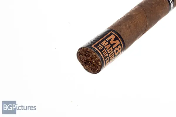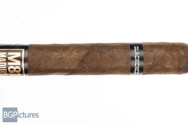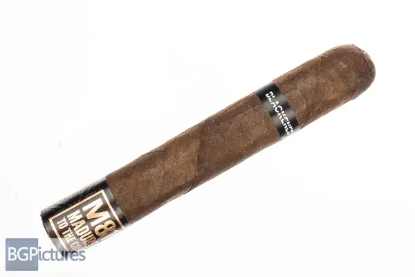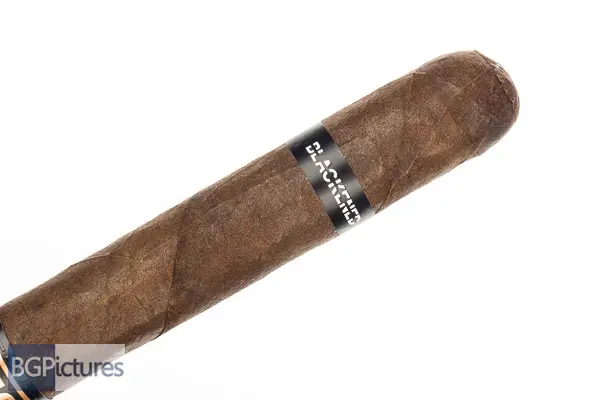 Blackened M81 Robusto by Drew Estate Cigar Review – This 5×50 stick features a very dark cocoa thick, oily, toothy wrapper with a rock hard pack and pungent sweet, musty firecured campfire aroma. First light reveals an almost unsmokeably tight draw with minimal sweet earthy smoke output and flavor. The first third slowly but surely opens the draw to normal, putting out thick medium-full bodied notes of a sugary sweet light earth, cayenne and intense pepper zing all through a long finish of the same. The 1/2 way point comes at a slow 35 minutes down to a medium body, shifting to a straight light earth on the draw and heavier earth aftertaste on the finish. Ending at 55 minutes the last third remained the same.