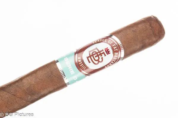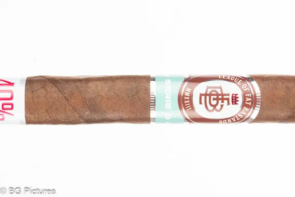League of Fat Bastards Serie O Toro Cigar Review – This 6×54 box pressed stick features a dark brown firmly packed satin wrapper with a large double cap and pungent campfire, cocoa and hay aroma. First light reveals a flawless draw with plumes of thick rich medium-full bodied smoke showing flavors of a heavy umami and building zingy pepper and spice kick through the bold finish. The first third burns perfectly throwing out thick rich smoke with notes dropping the umami in favor of a slightly sweet cocoa and light leather, both lasting through the finish with the pepper and spice dying down a bit. The 1/2 way point comes at 30 minutes dropping a solid ash and no flavor shifts. Ending at 1:05 the last third remained consistent with flawless construction to the hot nub.